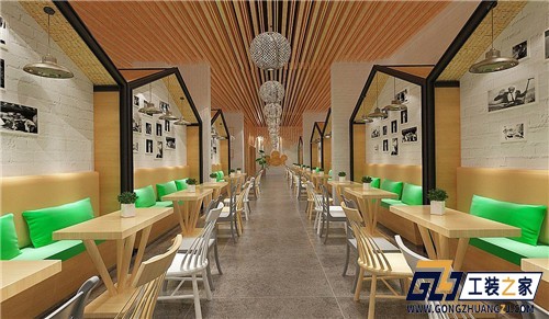 美式餐厅装修餐厅:基于麦当劳的肯德基美式快餐店,由于人流量大,桌椅靠得很近,而绿地则很小。因此,绿色装饰一般更简洁明亮,色彩鲜艳的植物。更简单的植物类型,如绿化带和矮树叶,花叶芋以及吊盆吊篮等简洁的植物种类,既节省了空间又不会给人很强的安逸感和欣赏感,以至于达到快餐店循环客流的目的。