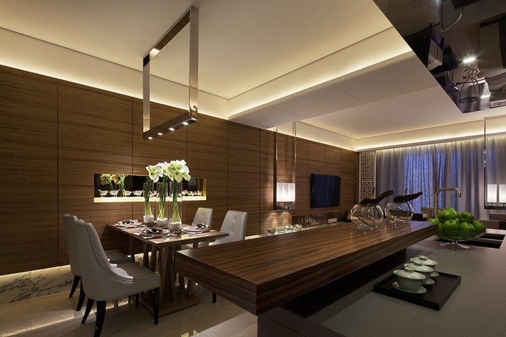 设计理念:本案采用的是新中式风格,此风格舍弃浮华,强调造型简单、装饰有度。设计师在整体家居设计中,提取了传统中式家居韵味,又融入了现代生活符号,合理的搭配及完美的布局,让传统与时尚并存。同时,设计师用穿梭往返的手法,解释着整个空间的妩媚,硬朗的硬装与优雅温柔的配饰碰撞,从另一个角度诠释了家的含义。在这里,屏风、字画、古玩、瓷器等的装饰点缀,无不透露着空间里浓郁的传统东方情调,在感受中国元素的同时,又在现代的材质中回归了当下惬意的生活。传统与现代两元素的糅合,简约而不简单、韵味十足又不乏实用性,这是业主对此空间最大的要求。