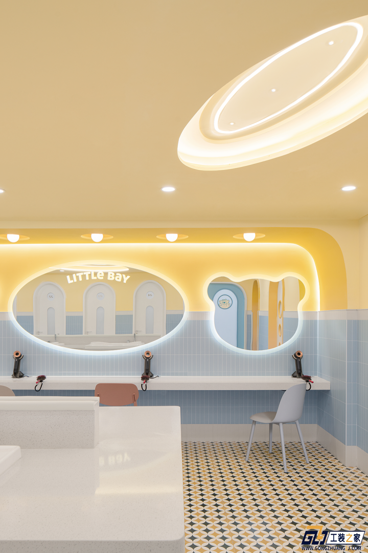 设计理念:亲子游泳俱乐部 至柔缤纷 圆弧的流畅线条,无止境地流动。圆弧贯穿整体空间,弱化空间棱角,守护小朋友安全的同时,赋予柔和流畅的视觉感受。 缤纷的色彩,让整体空间充满活力。