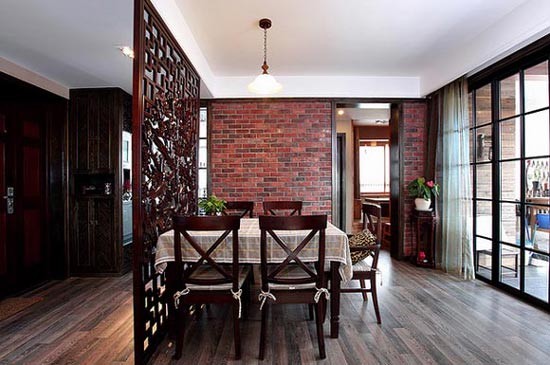 设计理念:本案是一套中式风格的两居室,120平米的面积,业主是一对中年夫妻,偏爱中国的传统文化,设计师在整体风格的设计上,把握了大气和稳重的家居氛围,柔和的质地,实木家具散发着淡淡的木香,肉眼就可以看到细腻的纹理,整个家里充满着书香门第的韵味与雅致,实木家具、红色砖瓦墙和屏风等的家居元素,使室内空间彰显出了一种高贵的风范,现在就随小编逐一欣赏一下吧。